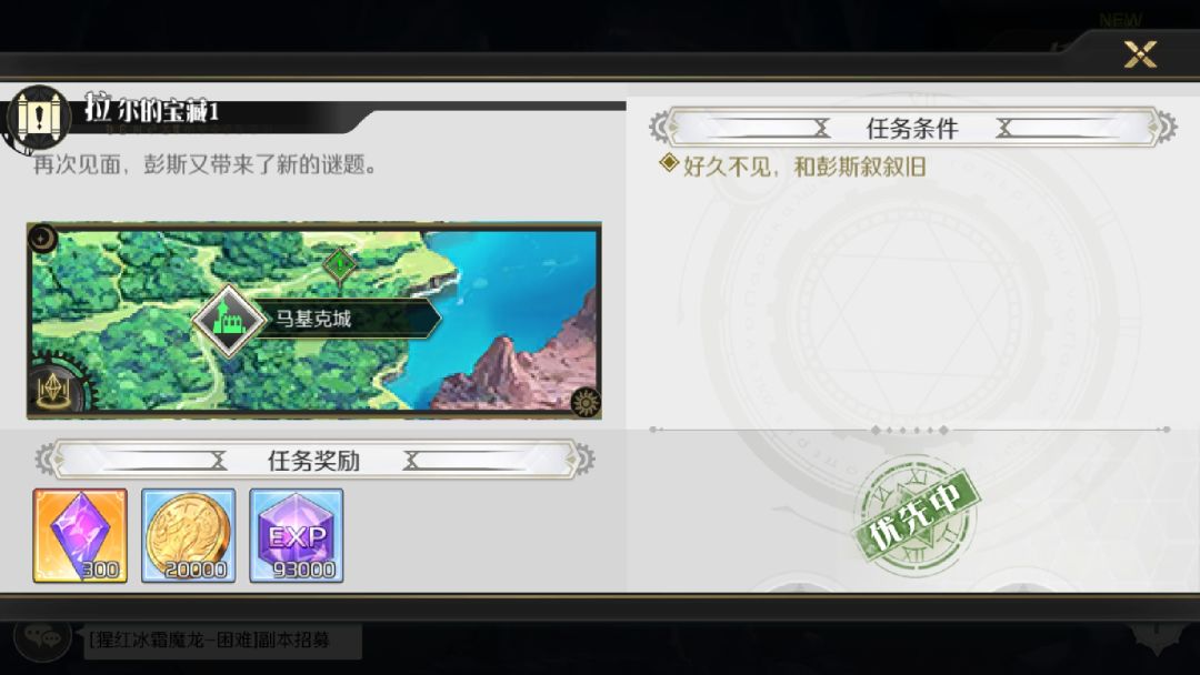 上一任务结束彭斯会让你找火和水的钥匙,并给玩家提示。上一任务结束后这一任务其实已经开始,但在任务栏不会显示,不知道做没做的小伙伴可以在星界地域里看