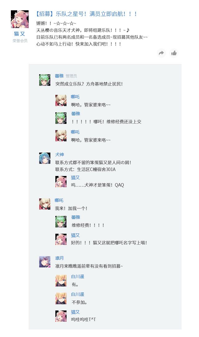为了纪念这一伟大时刻,猫又她们有了新想法~嘿嘿,到底是怎么回事,特尉大人快看看朔夜内部论坛里的记录吧~