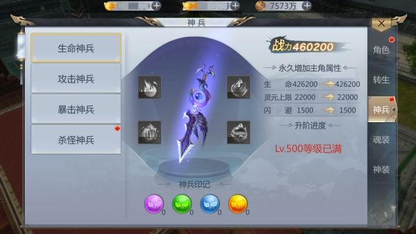 1)同一神兵,不同兵魂激活所需阶数不同,对应神兵进阶到30/45/60/75阶时,分别可激活对应兵魂。