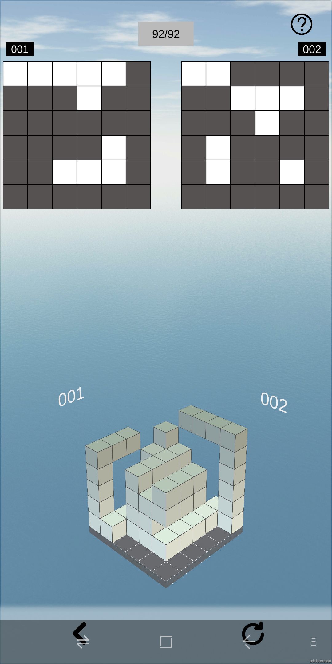 这个游戏玩一遍过了就算,像是趣味性测试,但是不算周到,有几关,包括92关,没有考虑两个视图共同盲区,解不唯一。