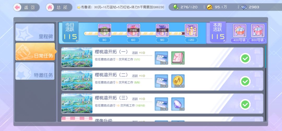 日常任务里所有任务都做了 但是活跃度还没满 是为什么啊꒦ິ^꒦ິ