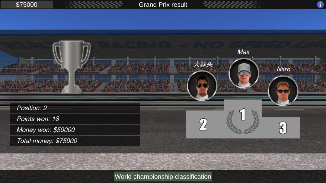玩到第四个赛事好不容易得了个第二,还是因为前四名在终点前换胎(什么鬼操作),抓地力有点过,碰撞这方面是我玩过最不经撞的赛车游戏,很真实😂,轻轻碰一下落后好几名,速度大了还会撞飞卡在一起,看似很简陋确实挺拟真的,,,我还没找到起步阶段超到前面去的方法,每次都是疯狂追上前车,有点吃操作,一般就得个第四第五,如果一开始就是第一就很轻松,升级比较耗钱,差不多两盘第一可以升一次,弯道超车的感觉还是很刺激的🙃