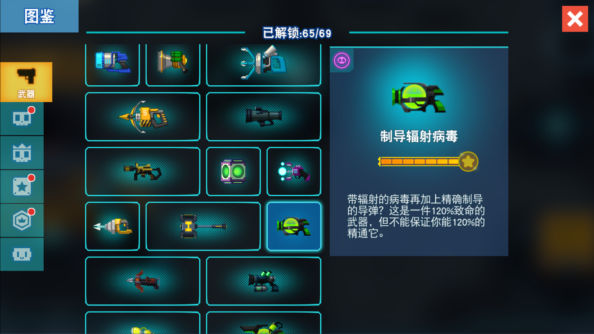 萌新开局并没有那么多可以选择的武器,所以我的建议是去有目的的解锁那些强力的武器。