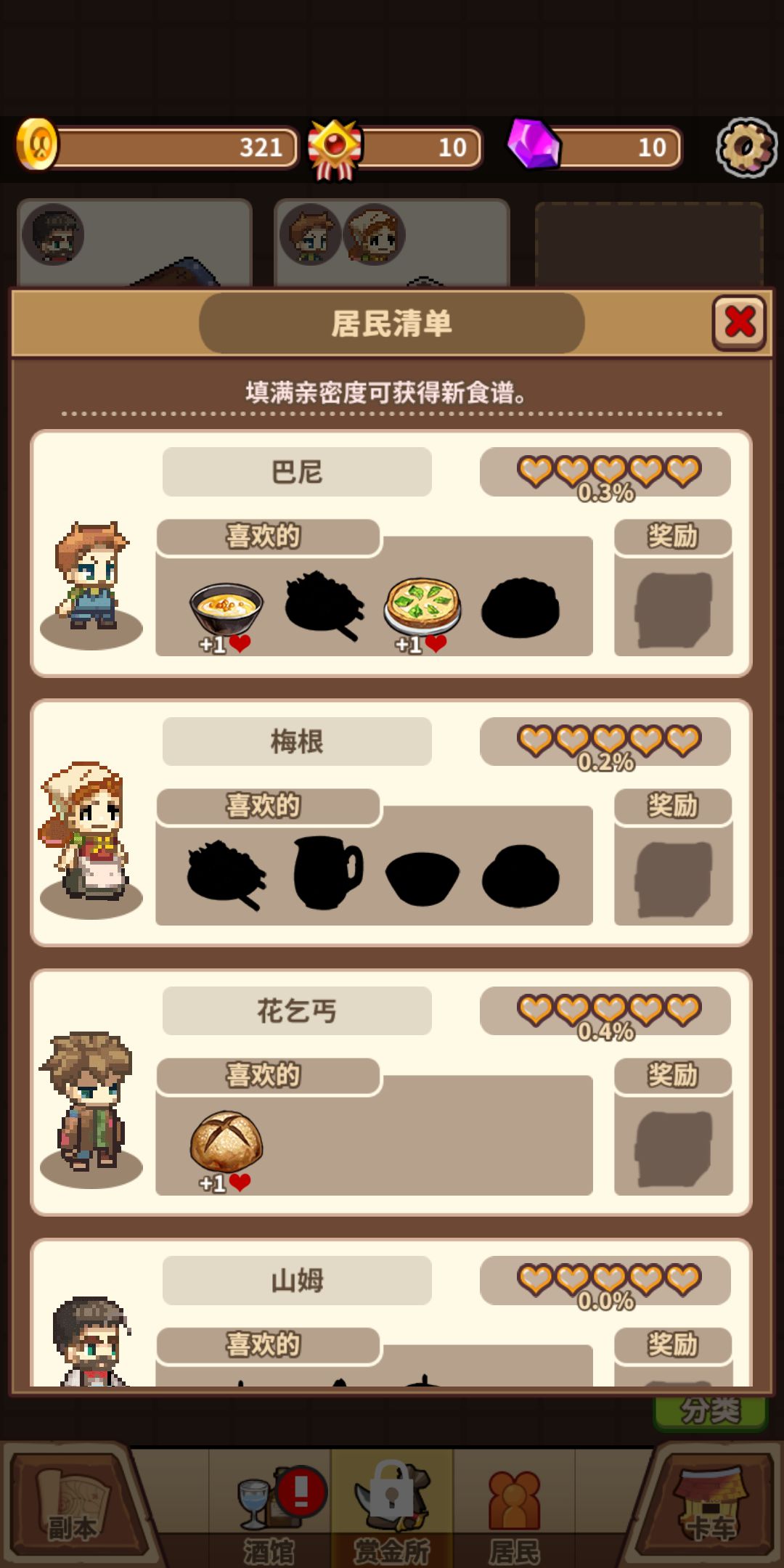 你的厨艺可以帮助他解锁喜欢吃的东西虽然他们可能也不知道自己喜欢吃什么(正解)