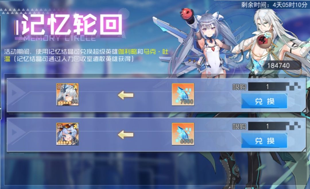 6)记忆轮回:活动期间,记忆结晶可兑换5星伽利略碎片、5星马克吐温碎片。