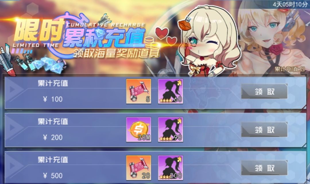 4)累积充值:活动期间,累积充值达到一定金额便可获得相应奖励,F币、高级构建图谱、超级英雄基因体,最高可获得9星化学英雄素体,助力强势英雄直通十星不是梦。