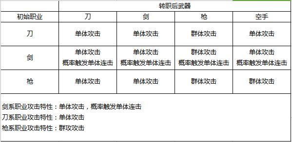 关于主角觉醒转职后攻击特性的问题,主要是与主角转职前所选职业有关,具体结果如图所示