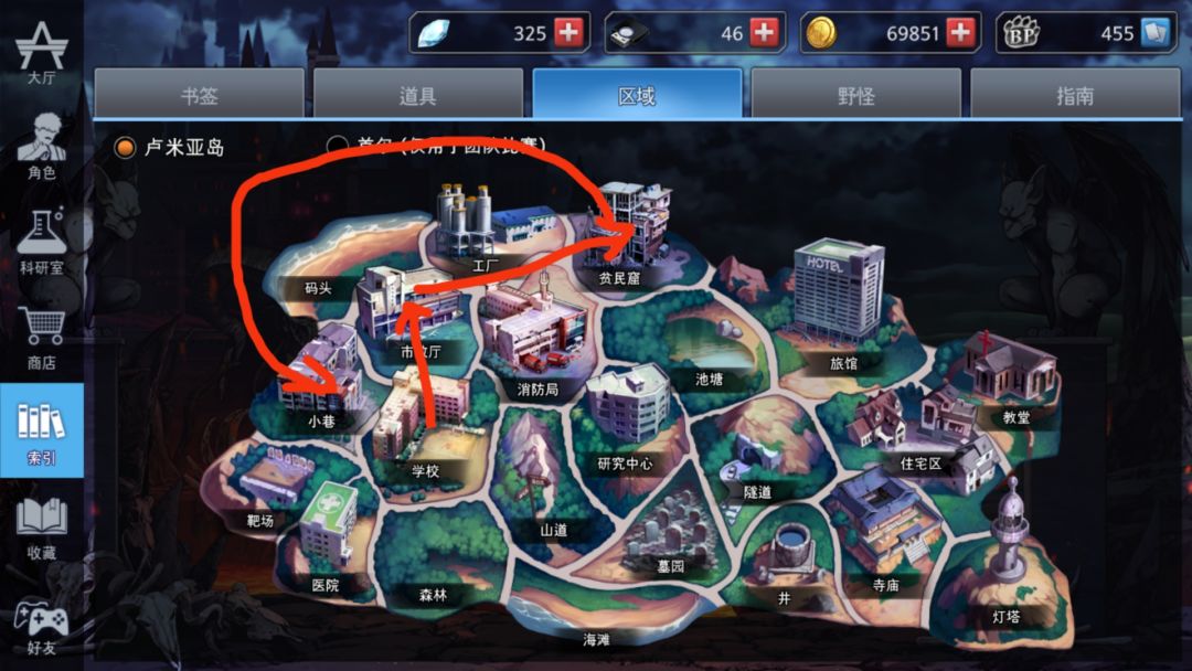 在小巷、贫民窟找手镯做九分金顺便打自闭头。在小巷摸到跑鞋可以带着。