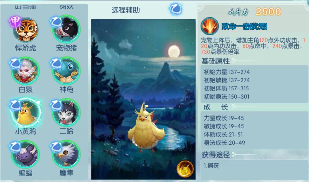 浪漫武侠情缘手游《一剑问情》致力于带给玩家一个花好月圆的浪漫经历。在《一剑问情》中,有一些小宠物,说不上特别可爱,丑的特别,偶然间总会戳中大家的萌点,成为大家行走江湖时不可或缺的好伙伴。