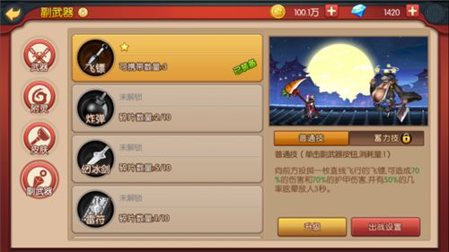 1、副武器是武士们的秘密武器,小瞧他们会付出惨痛的代价。
