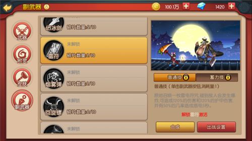 每种副武器都有各自的作用,烟雾弹可用于关键时刻保命,雷符则是提高伤害,追求输出的玩法中用雷符是个不错的选择,飞镖、幻冰箭等有控制效果的副武器,则适合各类pvp玩法,和其他玩家对战,释放副武器控制住敌方武将之后,再接一套爆发输出的连招,伤害是很可怕的。