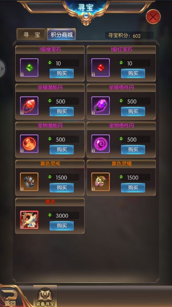 积分商城:每次使用钥匙寻宝就能获取积分,积分可在积分商城换取各种物品。