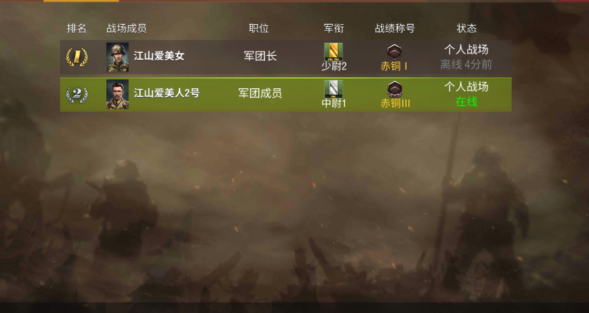 如图,战场军团和指挥部看的军团不是同一个,总是莫名其妙加到其他军团去(我自己没申请过),应为这个BUG我虎被打掉了好多