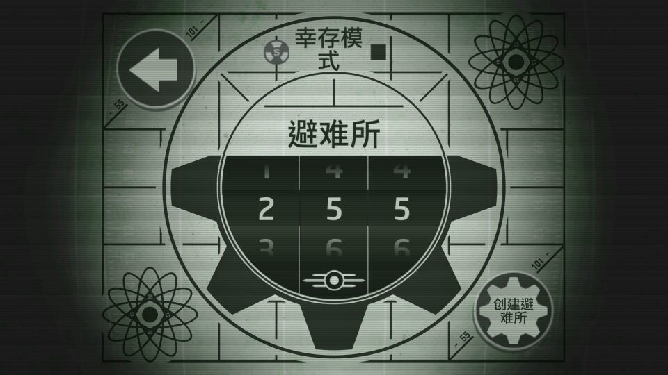 整个游戏采取了比较经典的组合房间的经营模式,同类房间可以组合获得更大的空间和更好的效果,根据组合数量分为大中小三种。由于辐射系列本身的设定,避难所大多位于地下,所以扩长方向是不断地向地底深入用电梯连接上下层。