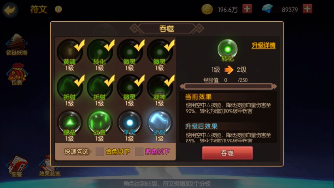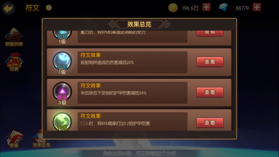 2、点击符文图鉴可以查看所有符文的升级效果。