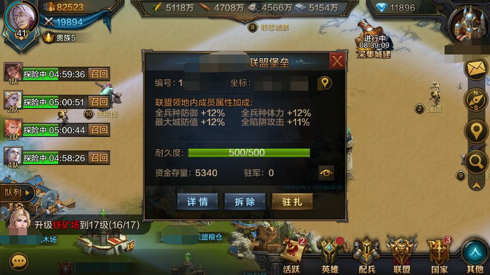 当生成联盟领地后就可以在联盟领地建造资源建筑了: