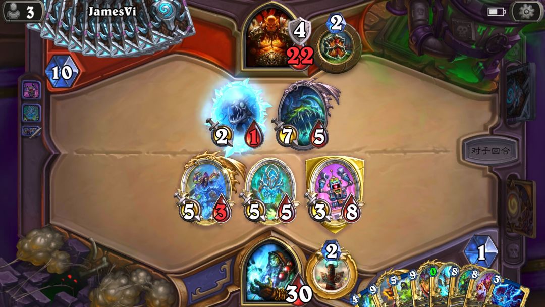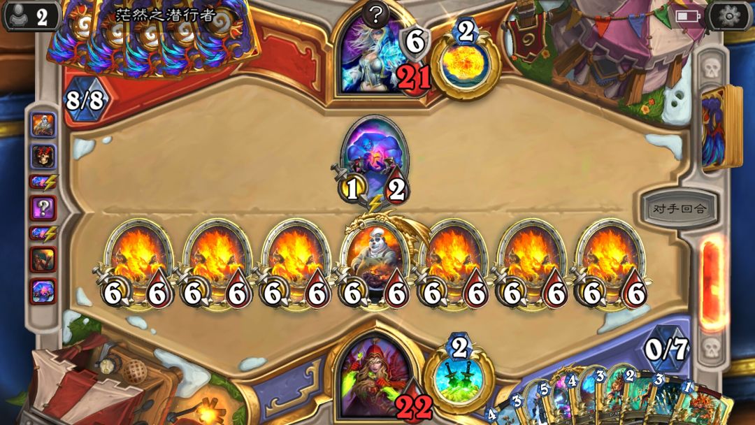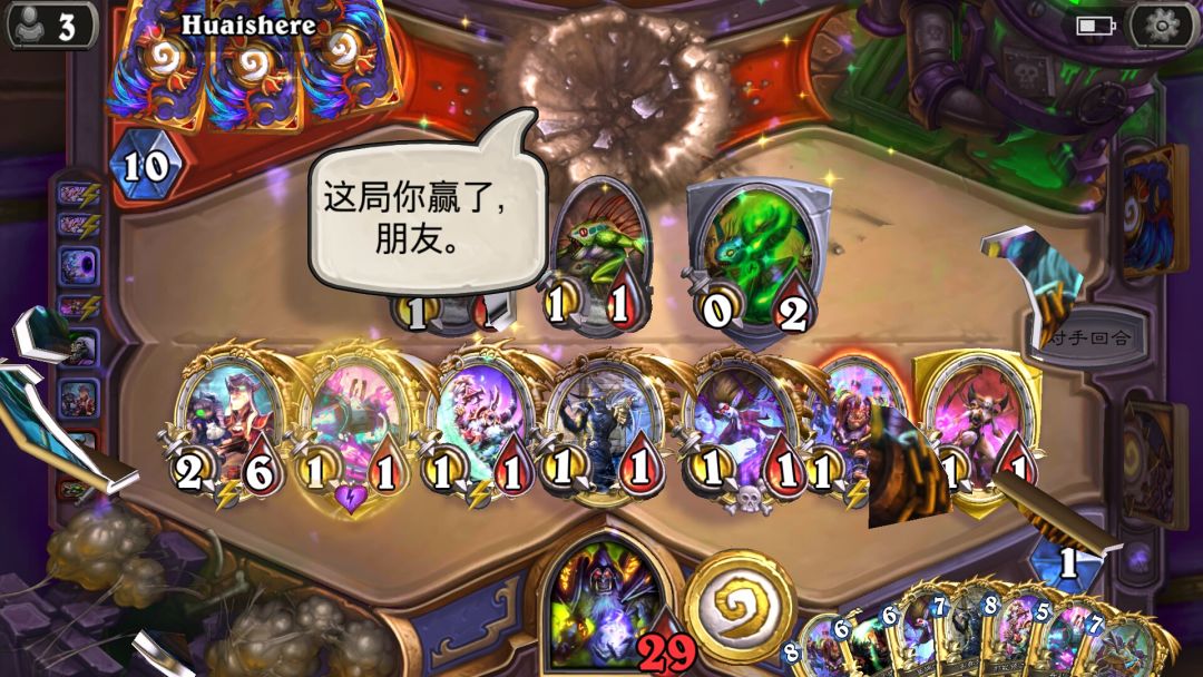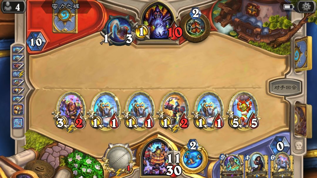 后手一费:下112或者113,两费跳雷象,三费地精炸弹,四费扳手,五费炸弹人,然后随便打,卡手就过,怎么那么多废话。以下是一只小明术的悲惨经历,叫你小明术还带咆哮魔,你还真把自己当弃牌术了?