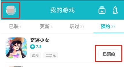 2、TAPTAP手机端(安卓)——【我的游戏】→【预约】