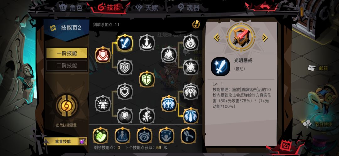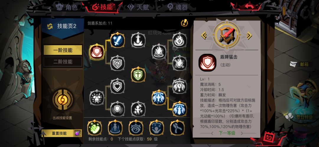 1.对物理怪的伤害增加。盾印持续6s时间且引爆盾印可以多次,如果多次格挡成功进行多次盾猛则不需要重新叠加盾印,且盾猛的盾荆刺伤害也由原来的(80+光攻击*75)*光动能*100%