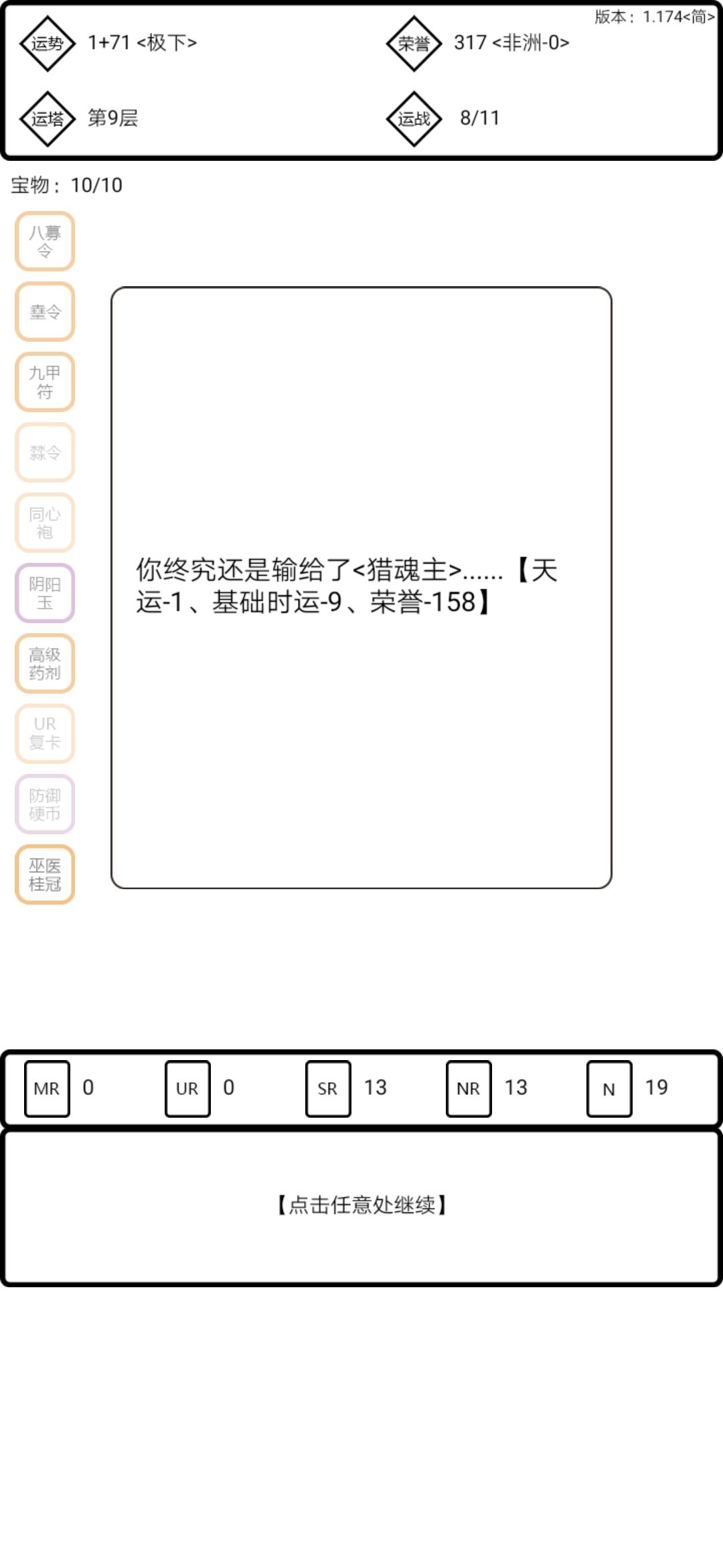 有点太难打了,最多打到最后的强三,运能神印的配件出来了都不敢换,同心符找不到,阴阳神印差个阴的没出来,过都这样了还是打不过,后面一次就扣了56十的血怎么打