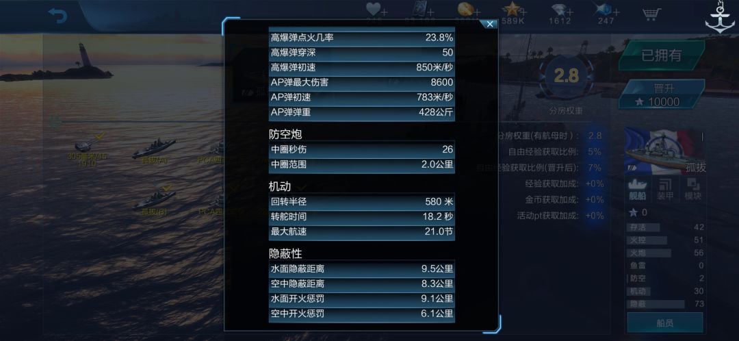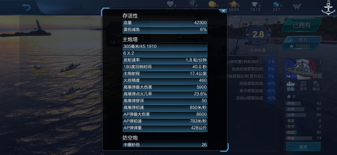 一、完全体无船员的各项面板数据(无特色配件)