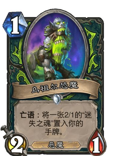 121恐魔,身材优质,一费对方有场面时下牌优先级高于邪犬,因为2攻身材可以卡对方的小怪,如果对方交解你下回合还可以继续下一个121不会卡手,另外,这张牌在场上时相当于你的流放者和任务达人多了一发子弹,你送掉他会有一张一费牌出现在右手第一张。