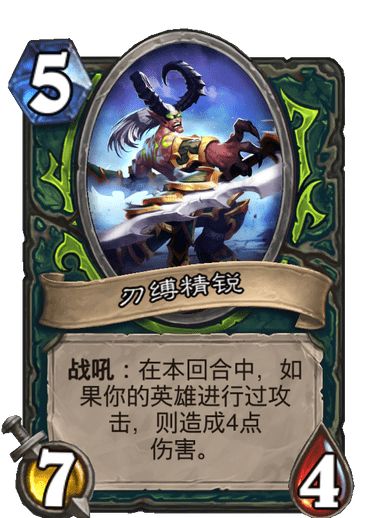 一些眼见超模的卡我就不说了,像邪犬,斩击,流放者,蝙蝠刀,监工,古尔丹的头之类的卡几乎是所有dh卡组必带的。