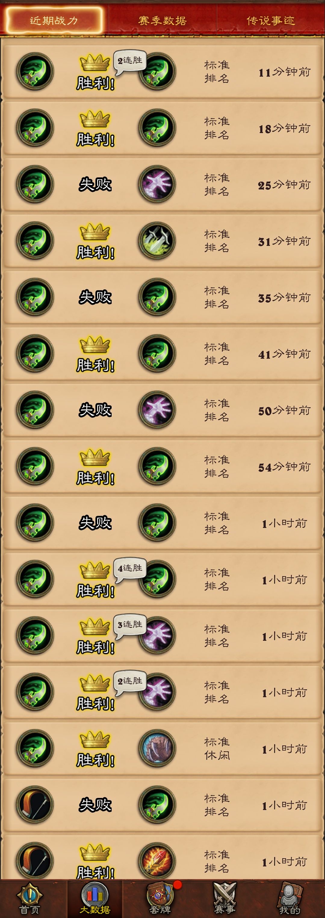对局思路基本就是1,2费优质身材小怪抢血站场面,3-6费靠斩击或者英雄技能配合任务达人,574和342之类的牌抢节奏,之后就有什么打什么吧,基本对手也很难活过八费🌚