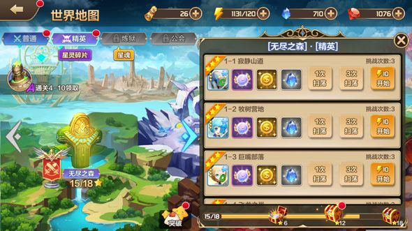 相较于普通副本,精英副本则产出优厚。各种高等级的星灵以及只能在星魂商店获得的极品星灵,都可以从这里找到他们的同名星灵碎片,作为提升其强化等级的材料星灵使用。每个副本每天有3次免费挑战次数,使用完后可以花钻石购买。但是,由于精英副本挑战消耗体力较多(每次10点体力),前期体力有限的条件下,记得选好再下手。