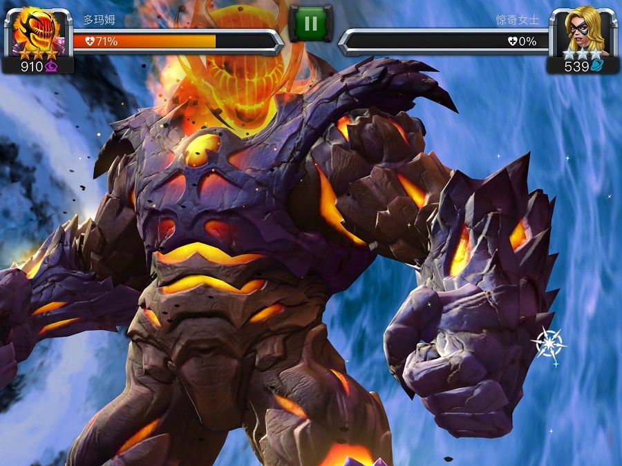 这是因为游戏前期你的英雄基本都是碾压的,战力差距超过30%无脑轻攻击都能赢,稍微格挡一下同等战力打过去之掉10%的血量。但是这只是新手期的福利而已,这里大家可以去“漫威格斗冠军”百度贴吧(没错这个也是讨论的一个游戏,并且之前人甚至还比超级争霸战多一点)看看精品帖里大神的操作。里面的BOSS各个都是几万几十万战力,而玩家操控的英雄只是几千。