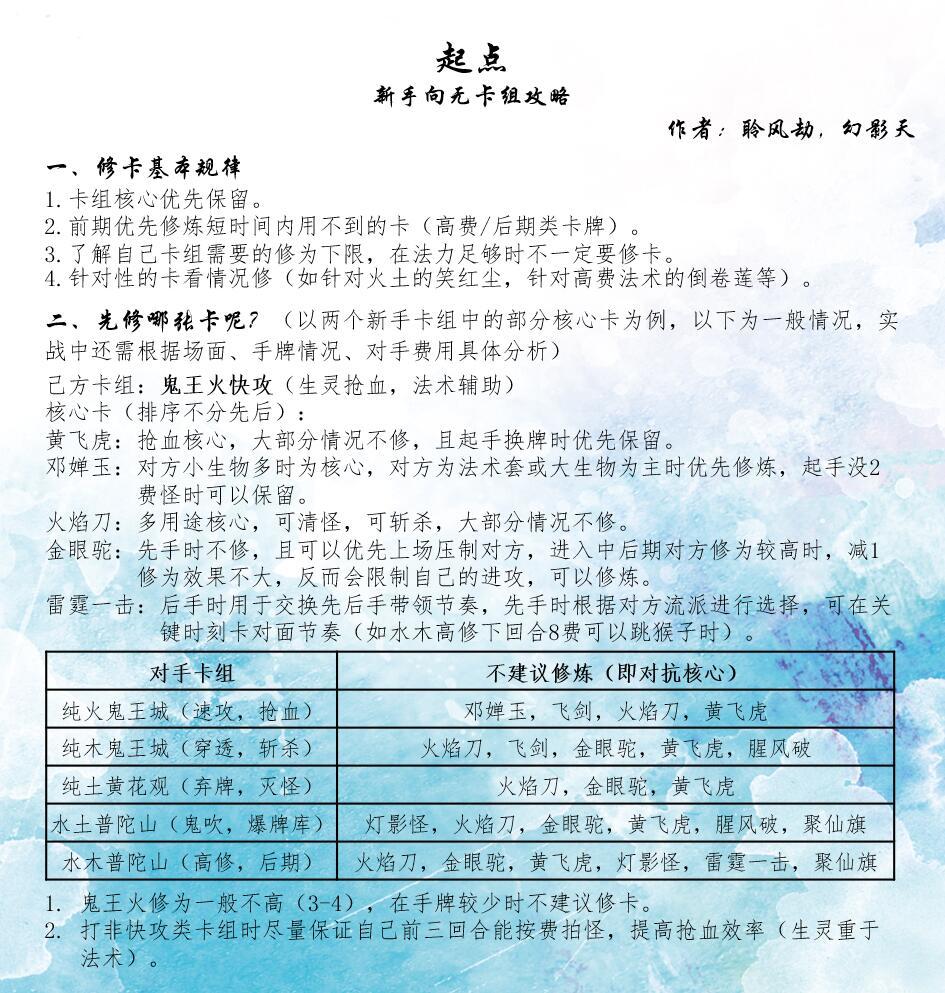 为什么会想出这样一份攻略呢?因为我发现所有的新手都存在一个通病,那就是到底我要修什么卡呢?包括本人刚刚入坑时,也有这种情况。为了方便萌新们速成,走更少弯路,我协力我的门外爱徒幻影天一起完成了它,并且我向各位承诺:起点是一份比卡组攻略更新更加勤快的攻略,目前这份只举了两个栗子,请期待我们的续作吧!