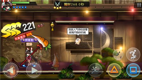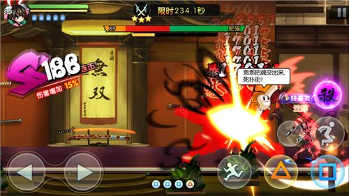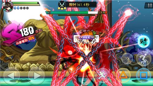 游戏中采用的是方向键控制,在左下角,有方向操作按键,可以操控角色向左或者向右移动。值得说明的是,在跳跃过程中也可以同步按方向键,控制跳跃的方向,三角形按键轻击或者正方形按键重击的时候,也可以同步按方向键选择攻击的方向。但是,在连招技能释放之时,无法调整方向,也就是连招技能释放期间方向按键无效,所以连招技能的释放要预判好方向。