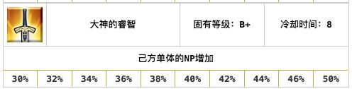 蓝呆一直都是不少王厨心中的痛,作为Fate系列的看板娘,蓝呆的强度虽谈不上弱,但也着实差强人意。直感强化后,加入了30NP的自充,对于周回的意义非同小可。王厨们,欢呼吧!