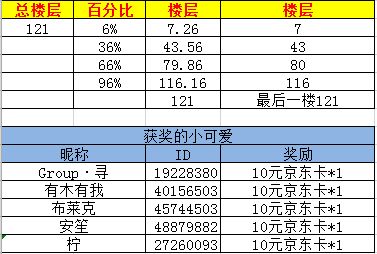 回帖踩中总回复数乘指定幸运百分比的楼层,即可获得京东卡一张,如果总回复数乘幸运百分比后出现小数点,则以四舍五入后的整数为准。