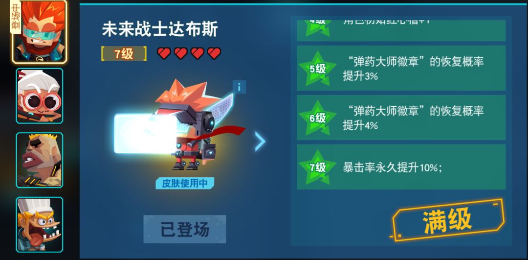 达布斯,免费人物,皮肤自带技能,开局多一个黄心,初始武器