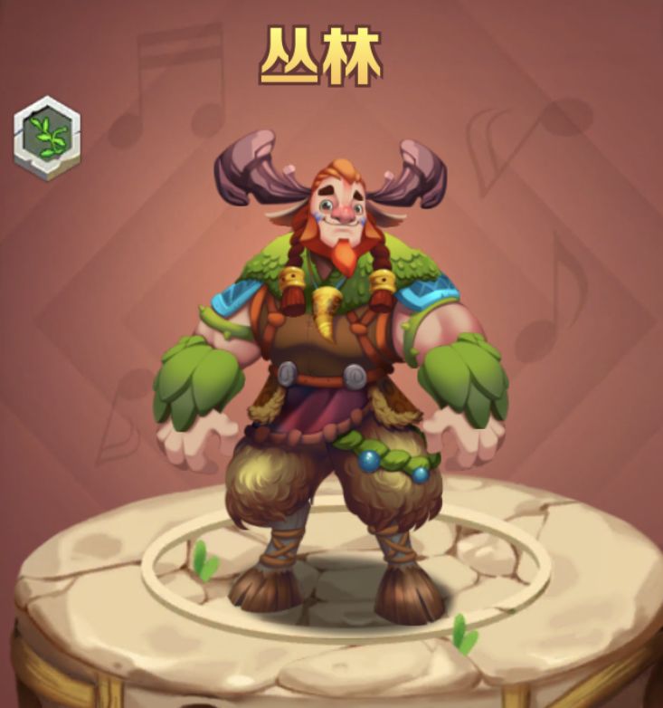 丛林,,由丛林的自然能量日积月累汇聚而成,植物岛是他力量与能力的源泉,自然的能量在他的身体里不断循环,只要不离开植物岛,他的力量就是取之不尽,用之不竭的。是植物岛的的守望者、守护神,更是战神,战斗能力超强,性格爽朗,十分喜欢打仗,而且勇猛顽强,是植物岛力量与权力的象征,守护着植物岛的和平。同时他也是乐团中的男高音,因为力量充沛,嗓音极其明亮高昂,哼唱出的声音像带有浓重的腔调,像是从天地之中用来,直击听众的灵魂。和守护者家族的的森林之子关系要好,两人无话不谈。