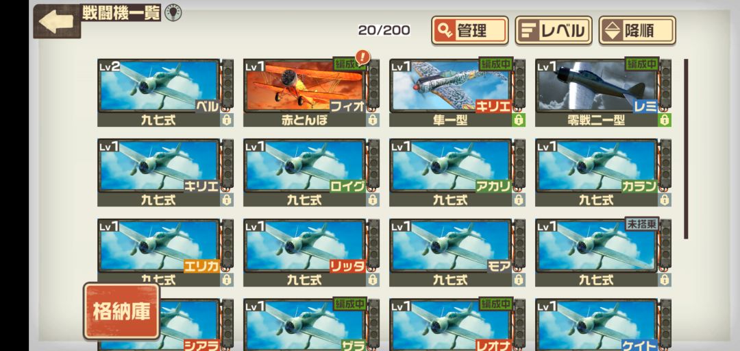 37245的战斗力,编队是系统自动的,现在推图基本打不过。每日刷飞机装备和松饼的关卡只能打得过初级。飞机没法造,没有工具,困难图打不过。。。唯一的四星就是女主,签到七天白给的,战斗力全是她撑起来。剩下的都是十连抽的一星,都是二十级的。在弃坑的边缘徘徊
