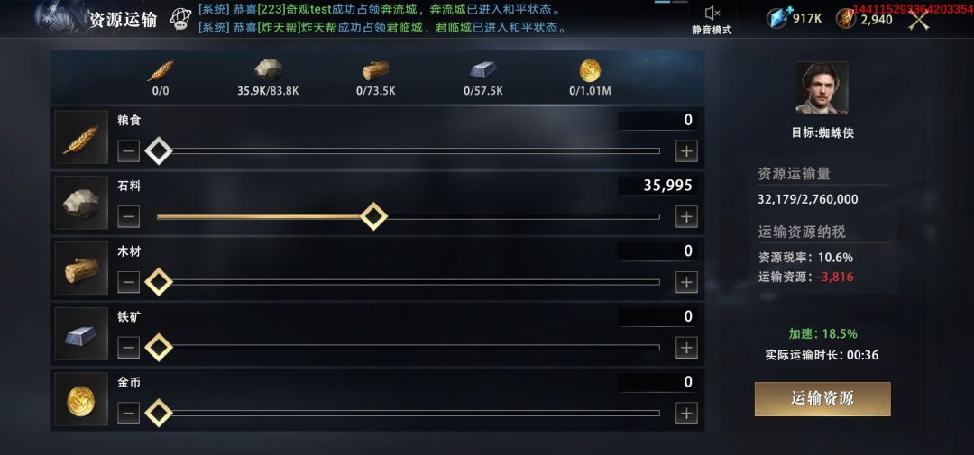 在我们为盟友运输资源时,会根据盟友与我们的距离与运输资源数量,资源运输会有一定的运输时间。若觉得运输时间过长,合理使用加速使运输资源更快到达目的地也是一种不错的选择。