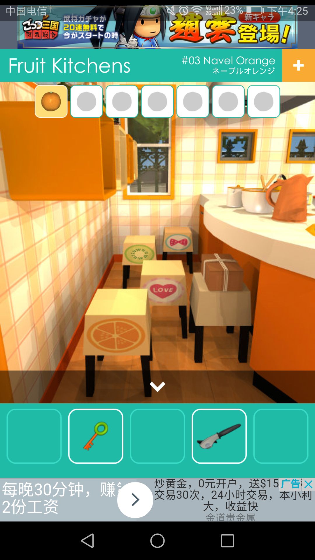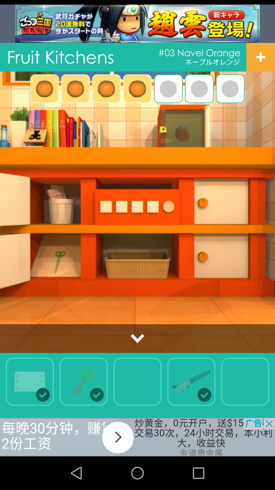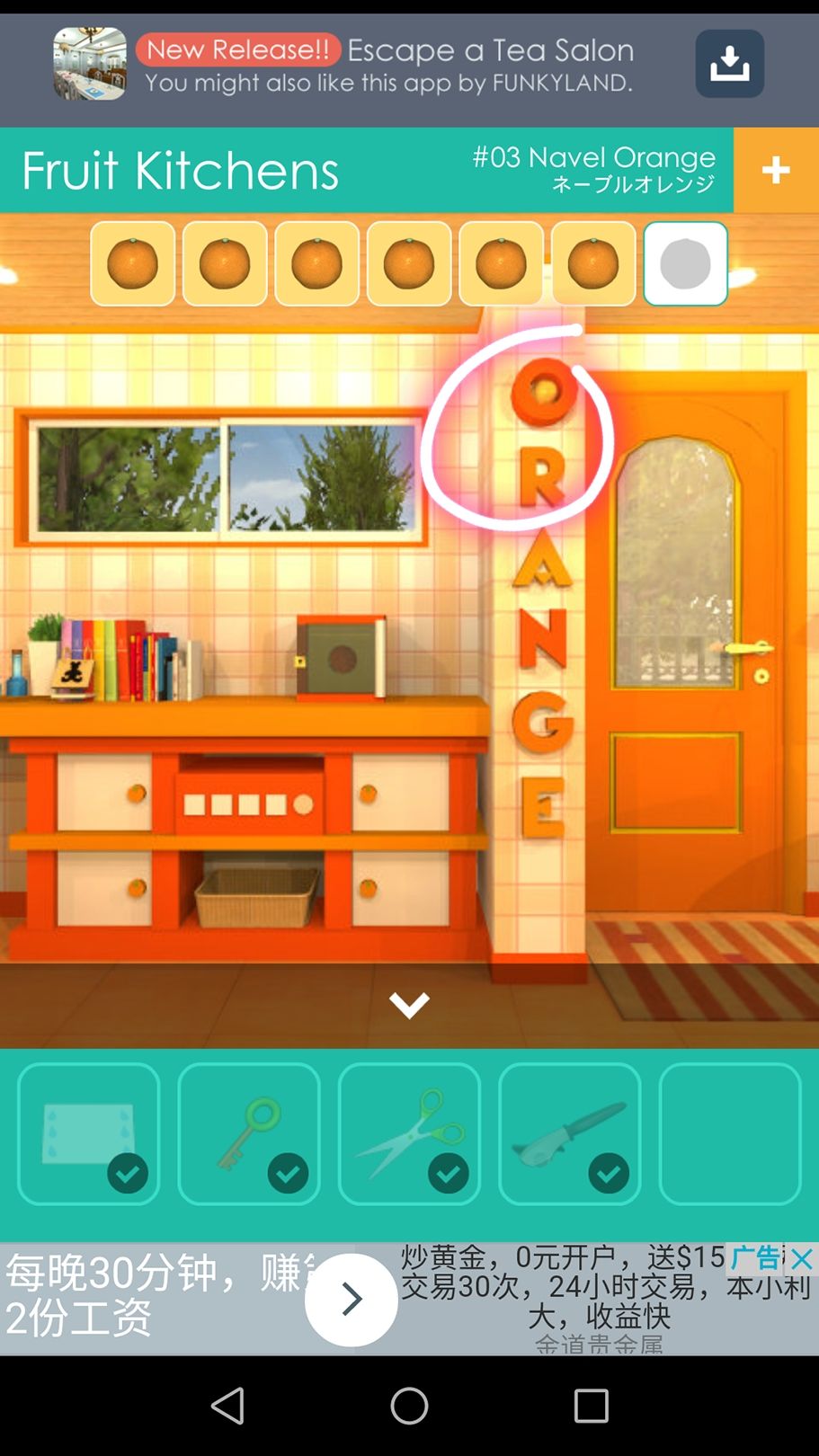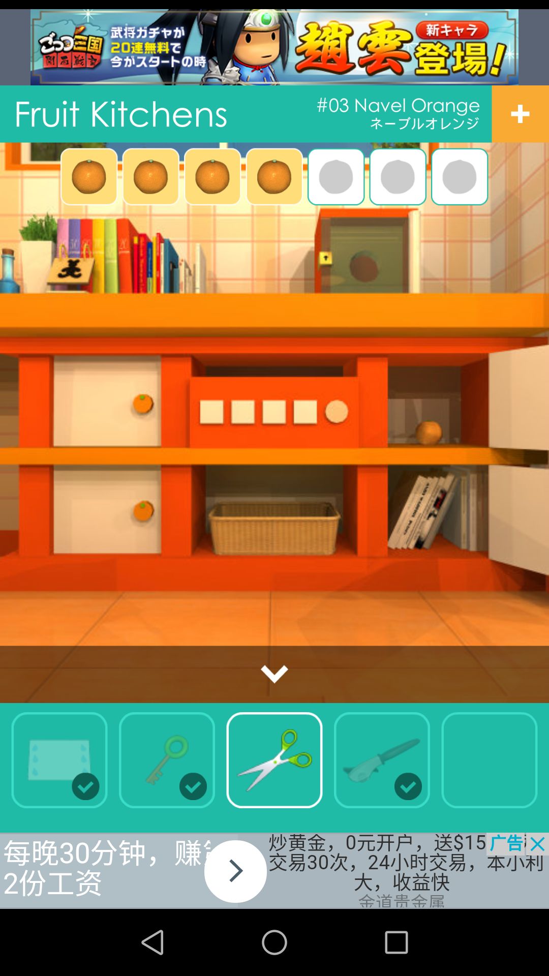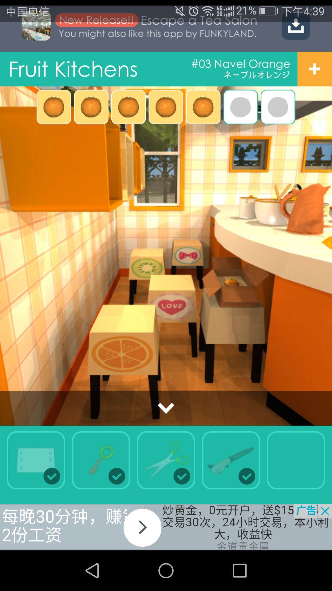 用剪刀可剪开厨房椅子处的包裹,得到第六个🍊