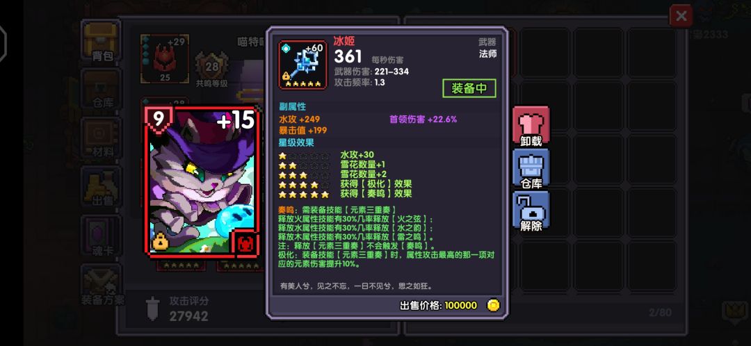 武器魂卡--猫咪,大师,克罗塞尔(主属性优先选择暴击伤害)比较难得