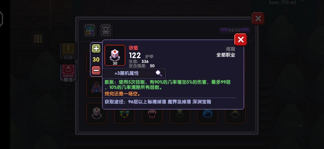 戒指--欲壑(赌狗戒指):当三重奏打出雷鸣的时候,释放技能频的率变高,叠的速度快,伤害自然会变高,各位非酋也可以带元素戒指