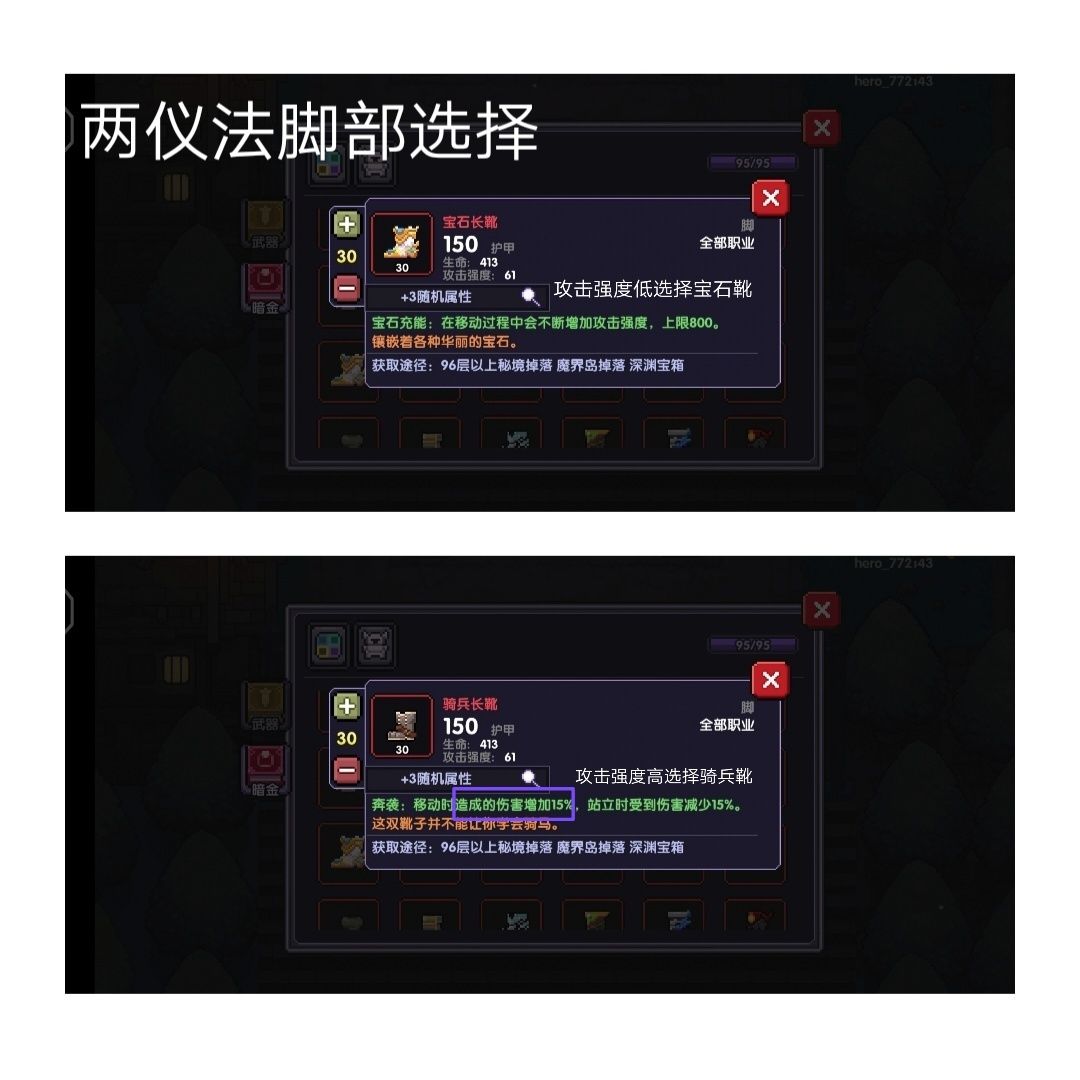脚:带3攻击强度,也可以带2个攻击强度1个护盾伤害(魔界岛到后面,怪的护盾值会很高)