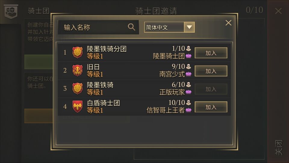 从昨天开始我就按了这个键一直到今天现在他都是暗着的,但没提醒我说是否加入进去了,那个任务也一直没完成,反正就这么暗着,是bug还是什么?以及我还能不能加入其他的骑士团