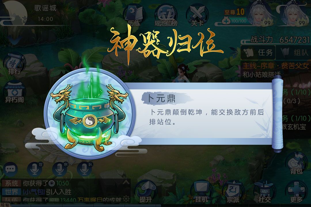 较高的神念值消耗,在战斗中,虽然没有“幻思铃”“浮沉珠”等神器灵活,但是只要发动卜元鼎,便可扰乱敌方阵型,将敌方前后位置互换,完美克制前排的肉盾敌人,使敌方脆弱的后排输出完全暴露于我方攻击之下,配合超高爆发的伙伴尤其强大!但同时也意味着释放时机极其重要,不然有可能白白浪费神念哦~๑乛◡乛๑