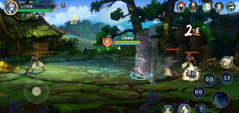 除此之外,在上面的图片中,我们还可以看到,不同于一般的英雄,沈剑心在绿色血条,黄色内劲条的下面还有一个蓝色的角色特殊资源——勇气值条,类似于渡会的能量,但积攒方式是释放技能(成功10点,失败20点)以及,挨打(挨打比放技能来的快)