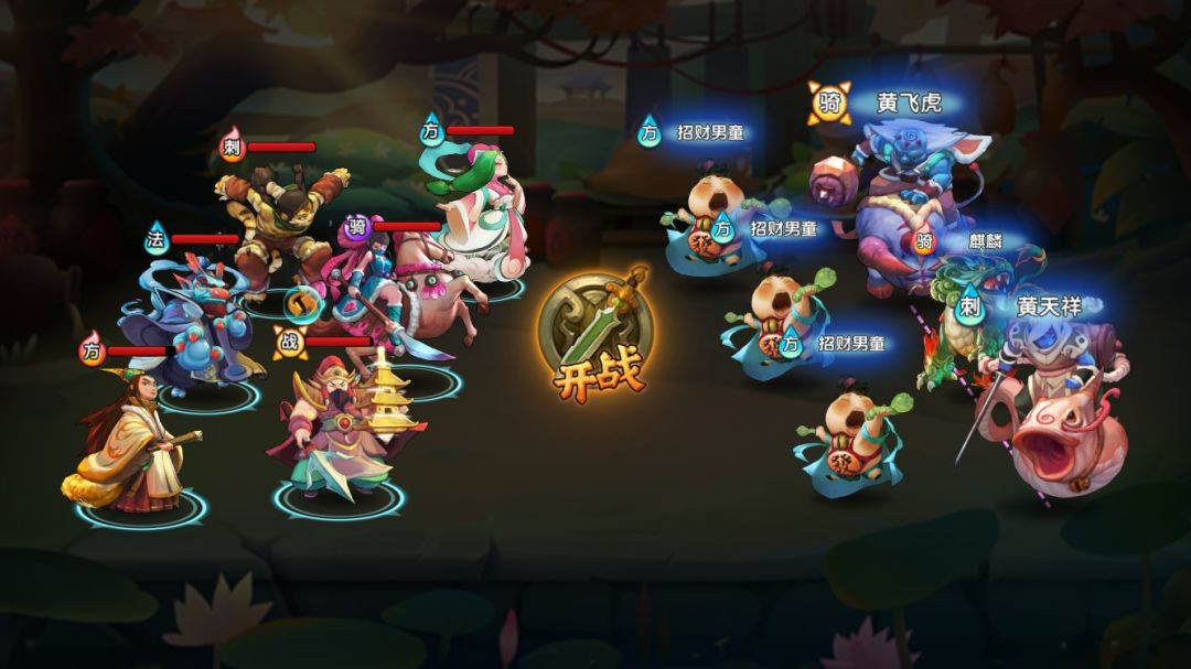 潼关-黄天化:天祥和天化的攻击达700+,而且飞虎减武力,天化减护甲,如果阵容的品质过低,想三星很艰难(属性过低)。一般的策略是起手姬昌大招抗压(橙姬昌),彩云救场,等待龙王二技能触发后(我方压力减少),多余的气放崇侯虎大招输出。面对一些敌方阵容压力山大的关卡,都可以用这种抗压式打法。