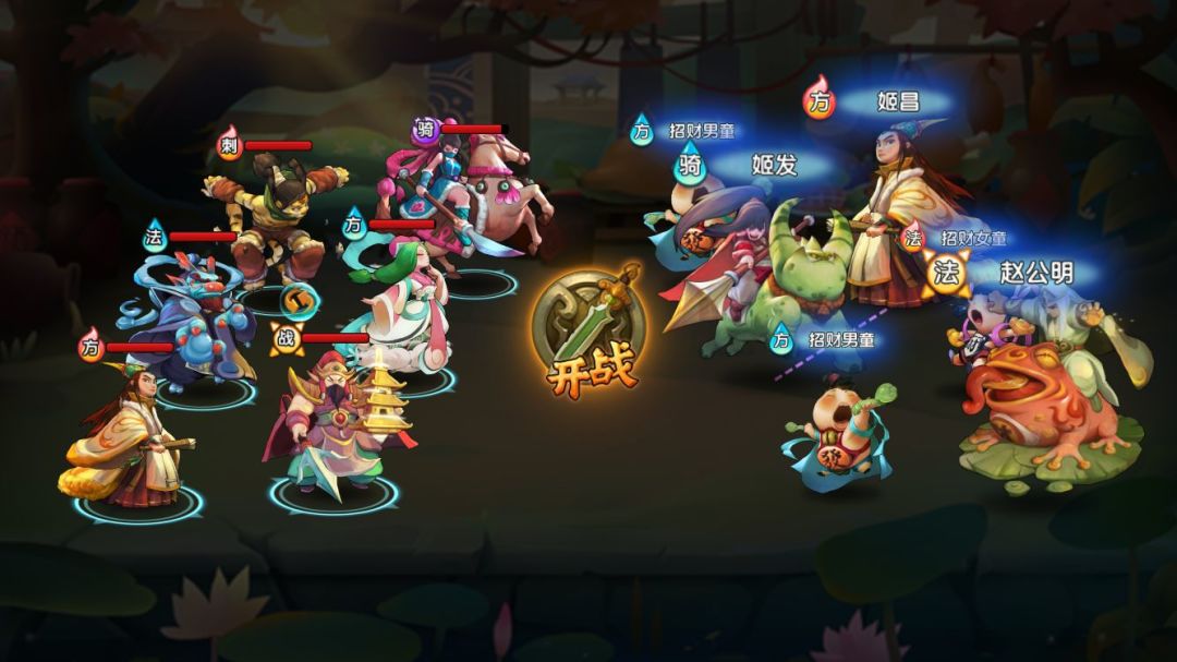 朝歌-姬昌-4/4:这关Boss不会放大,主要的威胁是赵公明,伤害800+,暴击率颇高,二技能随机攻击四人。由于赵公明为爆发伤害,想稳妥三星的话需要尽量保留3气给彩云救场。另外姬昌和姬发的二技能会加属性和奶,可用集火的方式单点击杀。