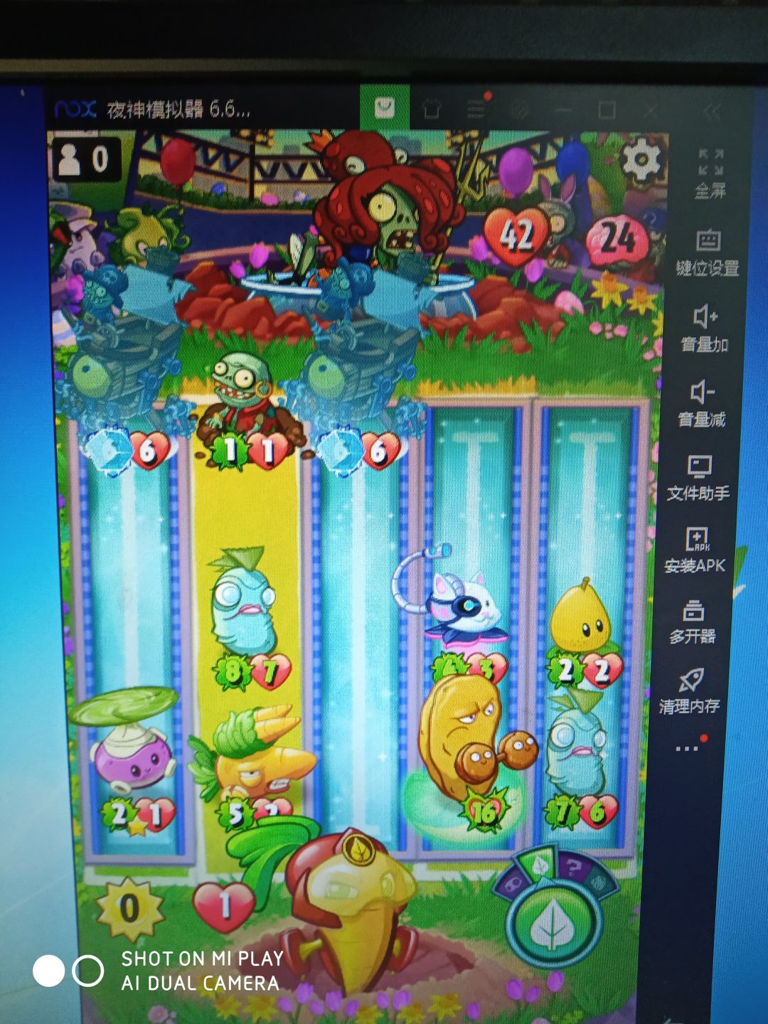 应该是唯一解法了,缺一点伤害也不行。注意摆放顺序。第一行先放,然后冻结两个陆行船。猫尾草4,然后放睡莲,梨子放5,海洋豆5,坚果放睡莲上,加两个生命加倍。剩下胡萝卜和海洋豆全放2