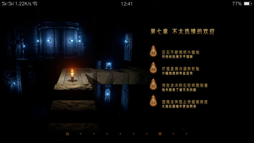 这里说一下,感觉七八章的话,第七章需要一些石矶,防止大石锤砸到你。第八章更需要一些逻辑,判断哪些是刺坑,因为一开始玩第八章的时候我是懵的,不知道咋回事呢就屎了,找到规律后其实很好通关啦。然后第九章,第九章最后一关真的,对渣机太不友好了╭(°A°`)╮,我顶着巨卡的画面通关了,最后数蜡烛的时候,少了一根,what?老汉那么卡,那么赶的被灯塔追(为什么追我~~我没有急支糖浆),居然还不是全收集?然后,又打了一次,终于被我找到了一根躲在齿轮旁,并不需要经过的一根小蜡烛(小严实躲得还挺蜡烛)。然后,我就全收集通关啦~~