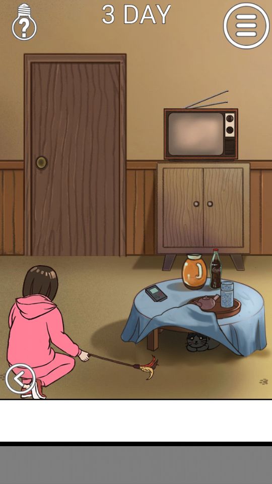 第三关:左边房间窗帘后有一根逗猫棒,能把右边房间桌子底下的猫引出来